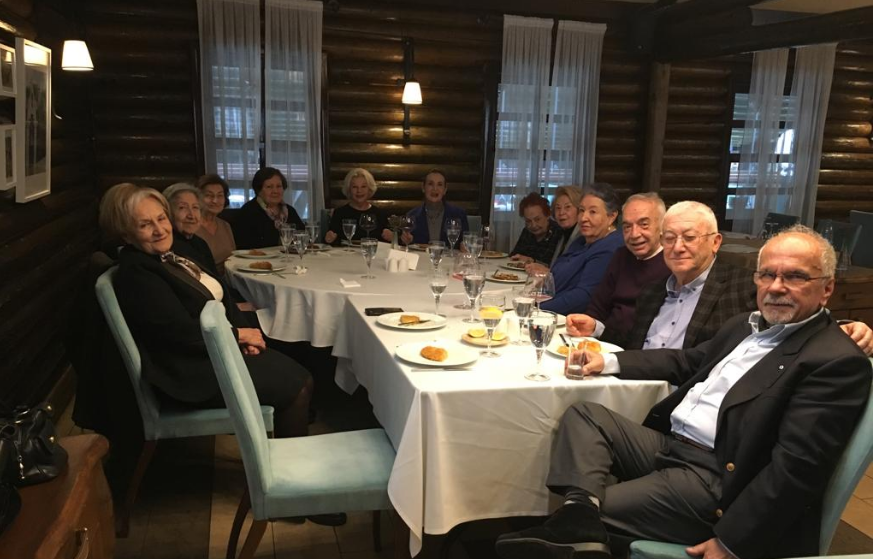 Amerikan Kız Koleji ve Robert Kolej mezunlarından bir grup Dafne Restoran (Ankara)’da. Soldan sağa Lale Arat Sirmen (ACG '63), Emel Göksel Salih (ACG '50), Gören Eti Önay (ACG '50), Ayşe Mete (RC '74), Pelin Köseoğlu (ACG '59), Sirel Karakaş (ACG '62), Serpil Bozer (spouse of AKTAN BOZER RC '58), Gazal Özbay Zaim (ACG '59), İncila Diker (ACG '59), Melih Ağusman (RC Engineering '65), Nuri Yıldırım (RA'62), Fevzi Yalım (RA '63)